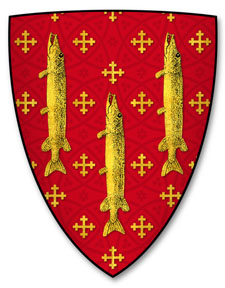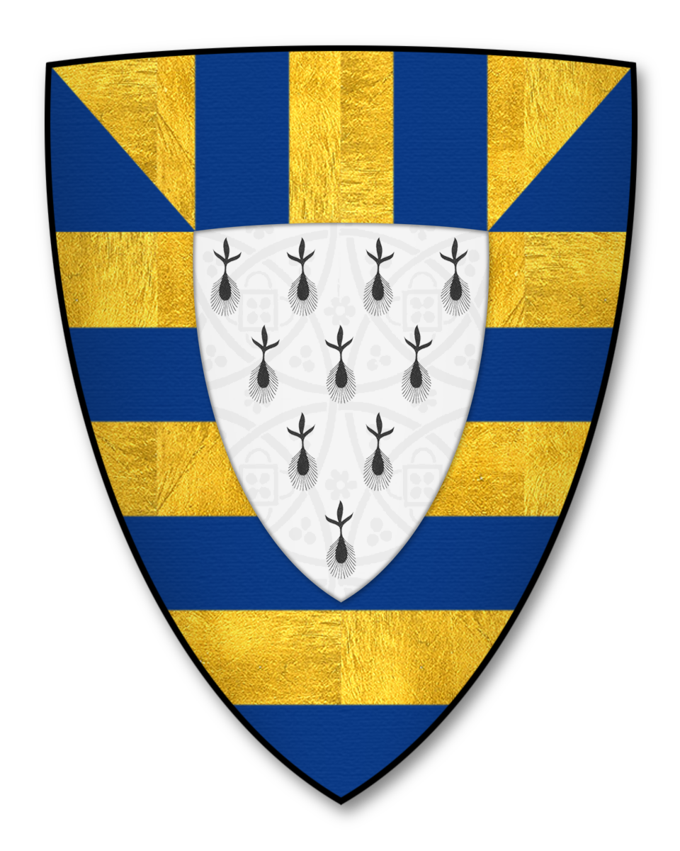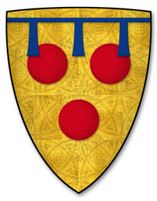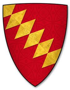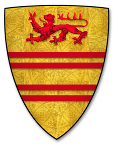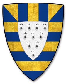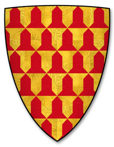Guillim's Roll (Grenstreet 18; Papworth J) is an English vellum roll dating to about 1295-1305. The original -- now lost -- is thought to be identical to the 17th century manuscript copy, MS. Harl. 6589, ff. 44-5 which consists of 148 shields in 21 rows of 7 + 1, with names above. The following illustrations are based on this copy. SHIELDS: 1 - 52 | 53 - 100 | 101 - 148 |